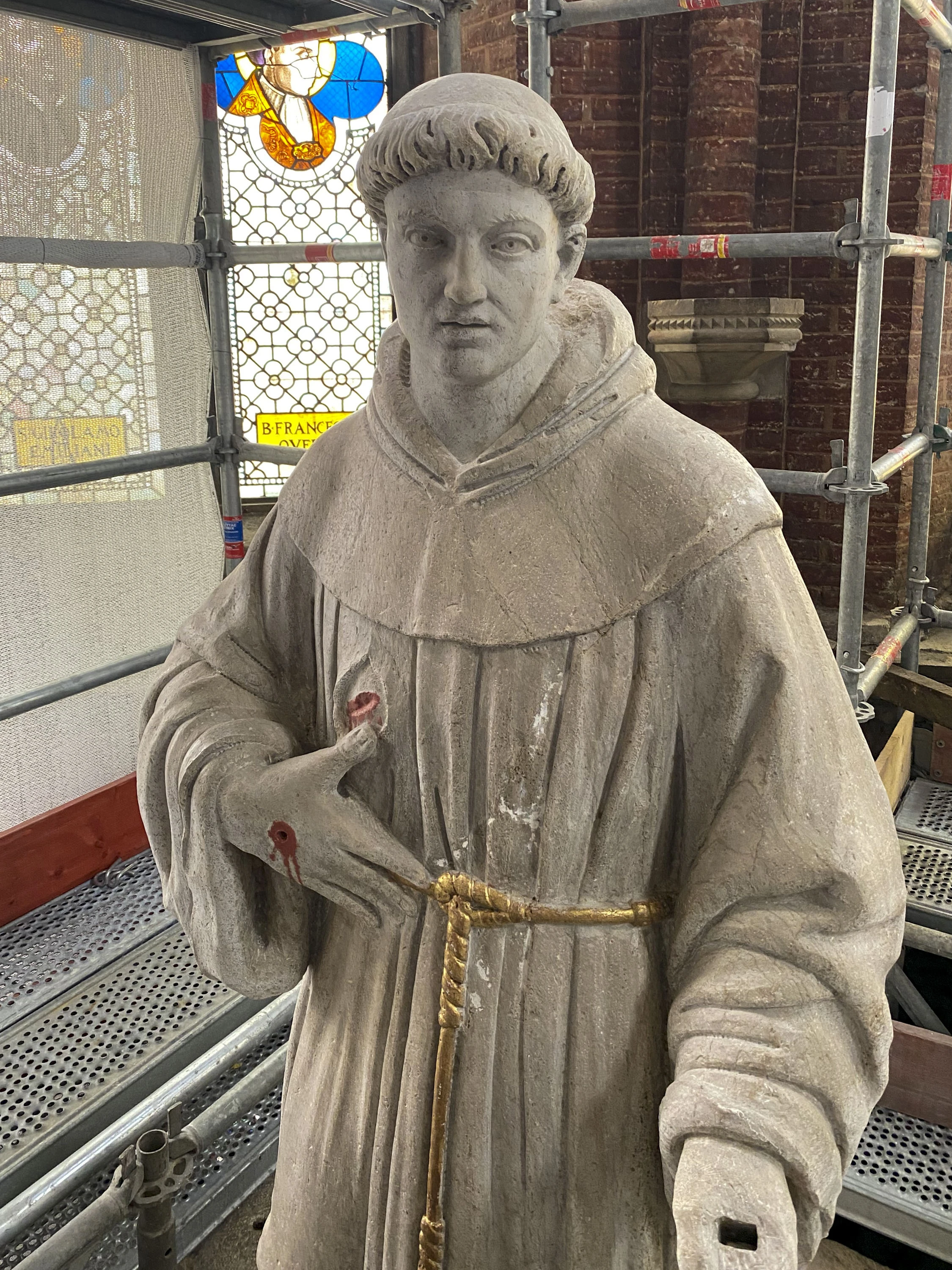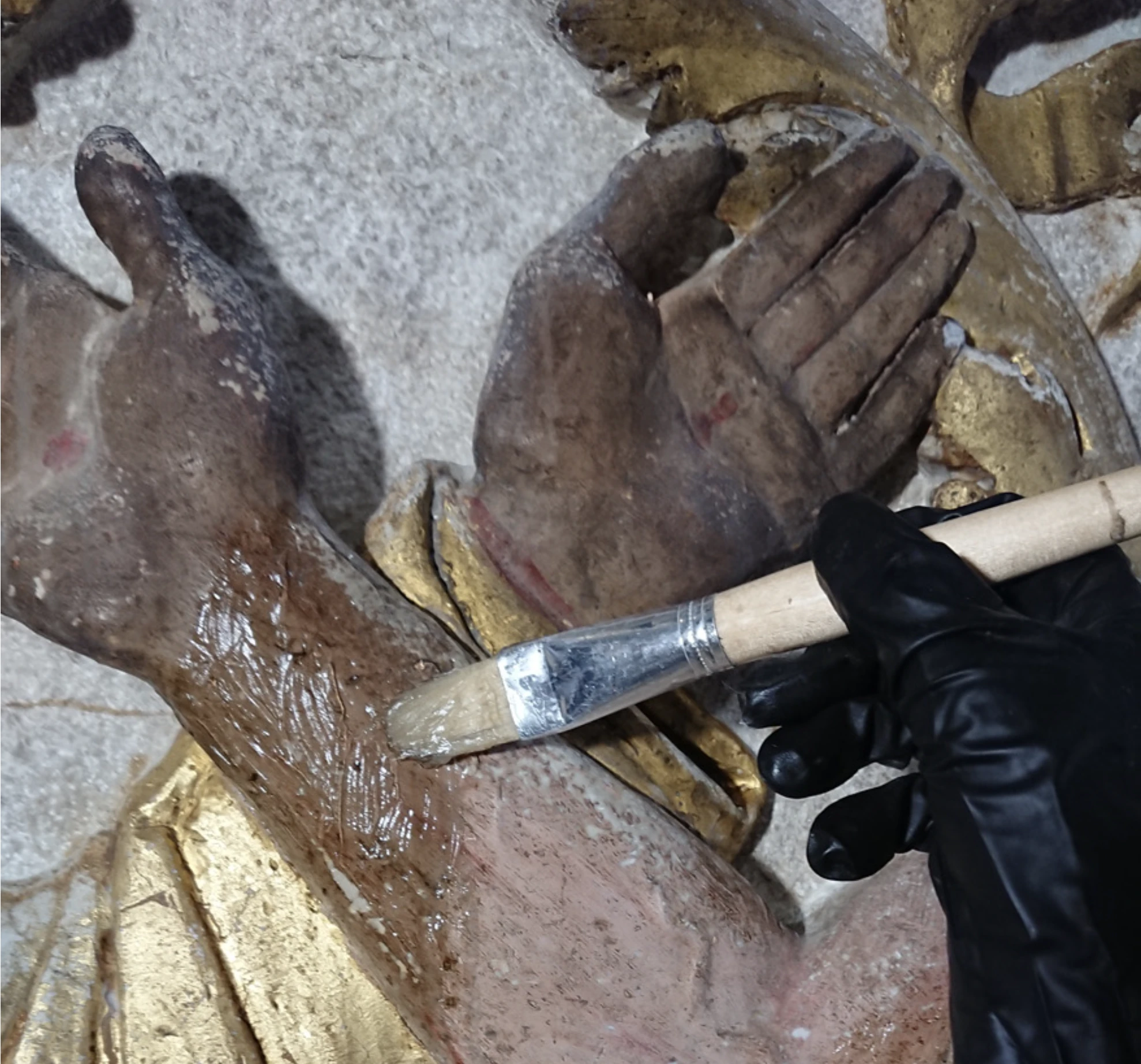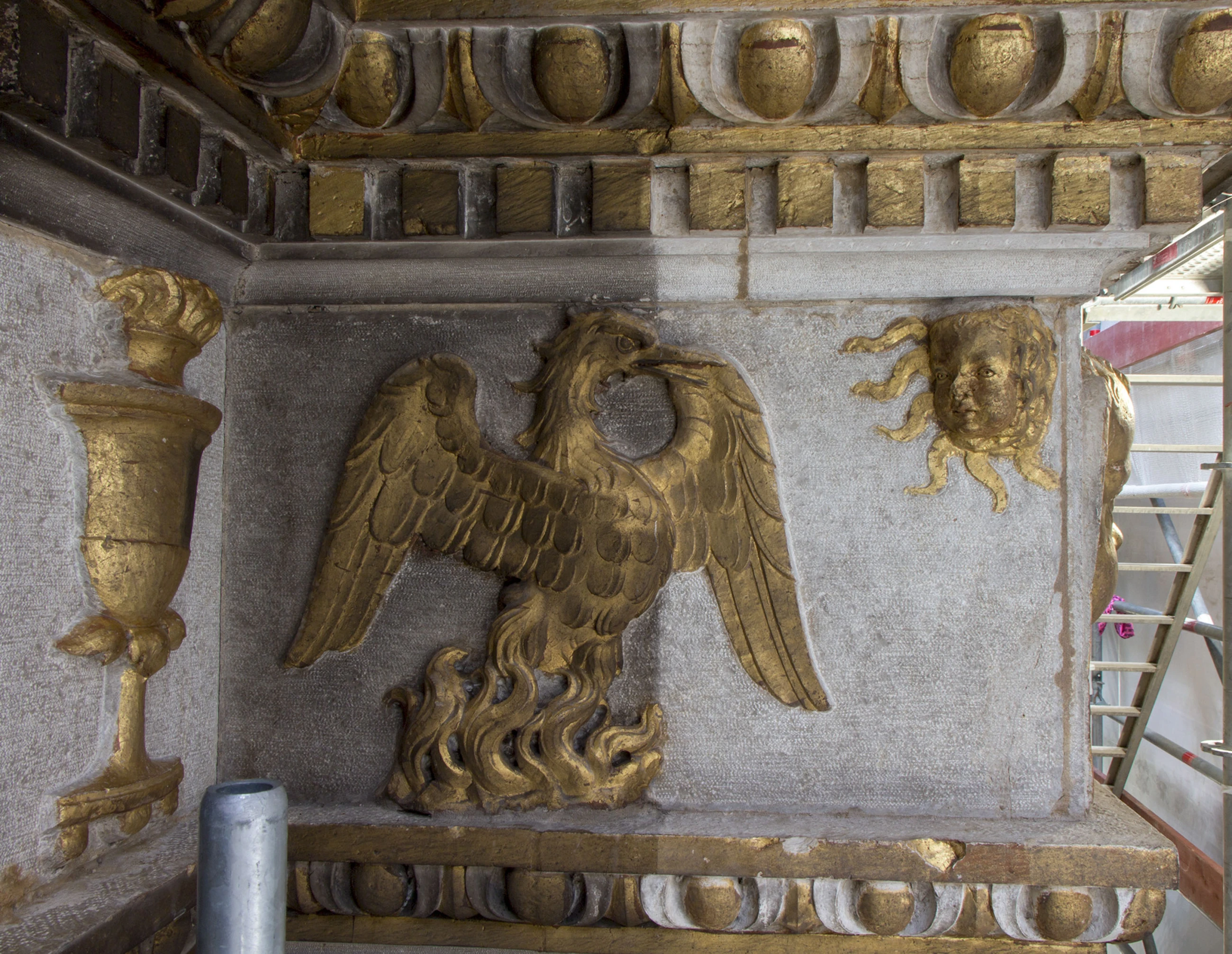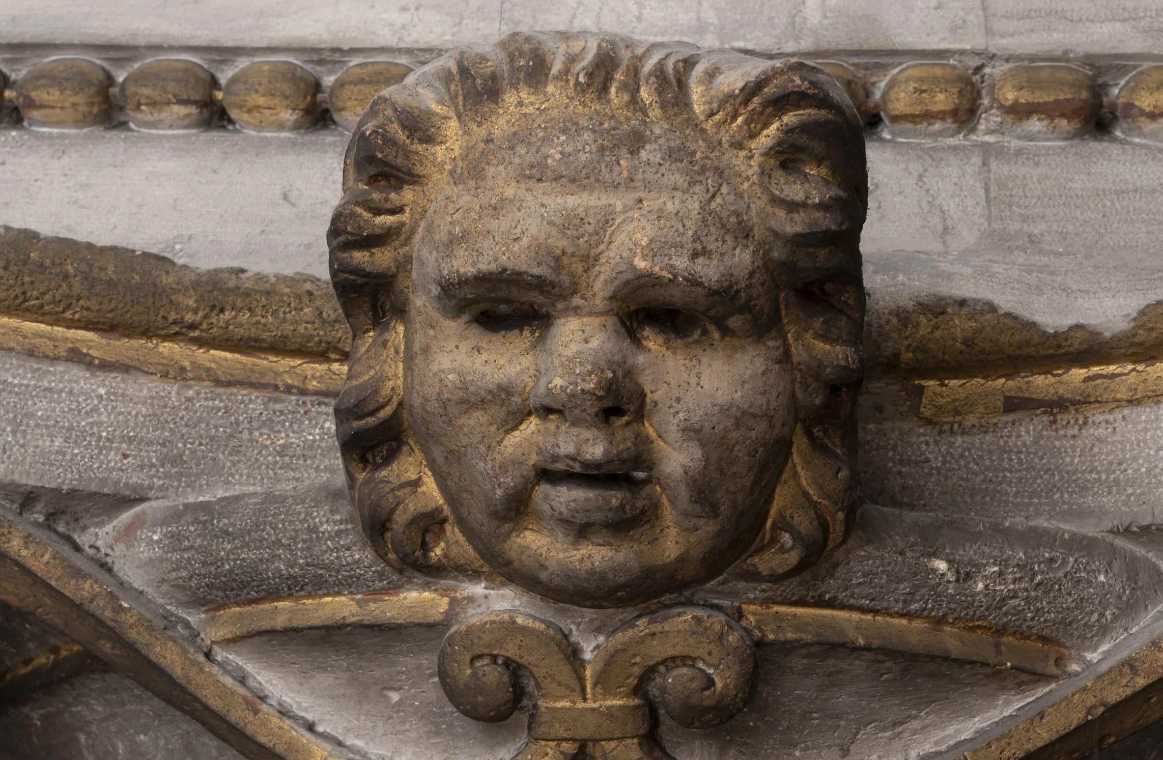 Witness the recovery of the marble’s original white tone, unveiled after centuries of obscurity beneath layers of candle smoke and dust. Marvel at the unexpected discovery of two frescoed putti hidden within the spandrels of the frame, their existence long forgotten. Admire the meticulous restoration of the frame’s original gilded decoration, brought back to its former glory with cutting-edge laser technology.